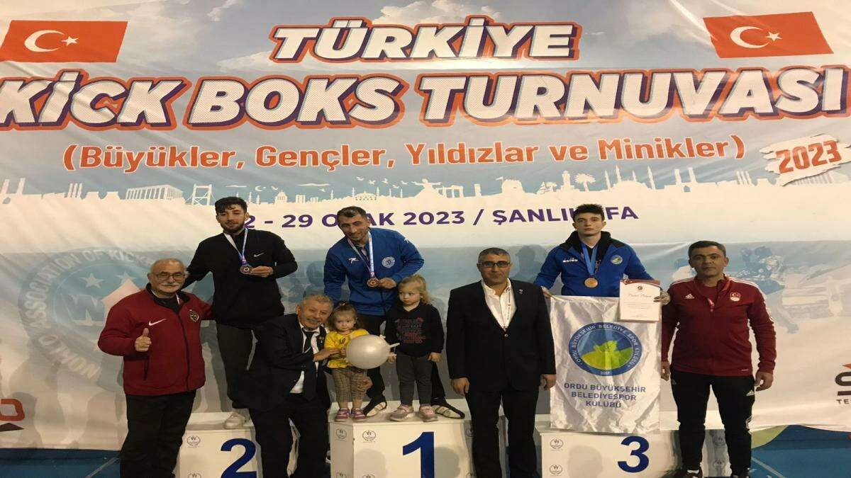 Turnuvaya katılan Ordu Büyükşehir Belediye Spor Kulübü sporcuları farklı kategoride dereceye girerek 3 üçüncülük elde etti. Şanlıurfa 11 Nisan Spor Salonu'nda bir hafta boyunca süren turnuvaya 81 ilden 6 bin 500 sporcu katıldı. Turnuvaya 17 sporcu ile katılım sağlayan Ordu Büyükşehir Belediye Spor Kulübü sporcularından Hamza Mert Kılıçoğlu Yıldız Erkekler 69 kg Point Fight kategorisinde, Mevlütcan Güngör Genç Erkekler 84 kg Light contact kategorisinde, Yaşar Efe Akçay ise Büyük Erkekler 63 kg Light Contact kategorisinde Türkiye 3’ücülüğü elde ettiler. BAŞKAN GÜLER SPORCULARI TEBRİK ETTİ Öte yandan elde edilen başarıdan dolayı sporcuları tebrik eden Ordu Büyükşehir Belediye Başkanı Dr. Mehmet Hilmi Güler, her zaman sporun ve sporcunun yanında olacaklarını belirtti.
