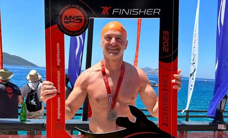 Fatsalı outdoor sporcusu ve esnaf Cem Eroğlu, Kaş'tan Meis'e 7 km yüzdü.