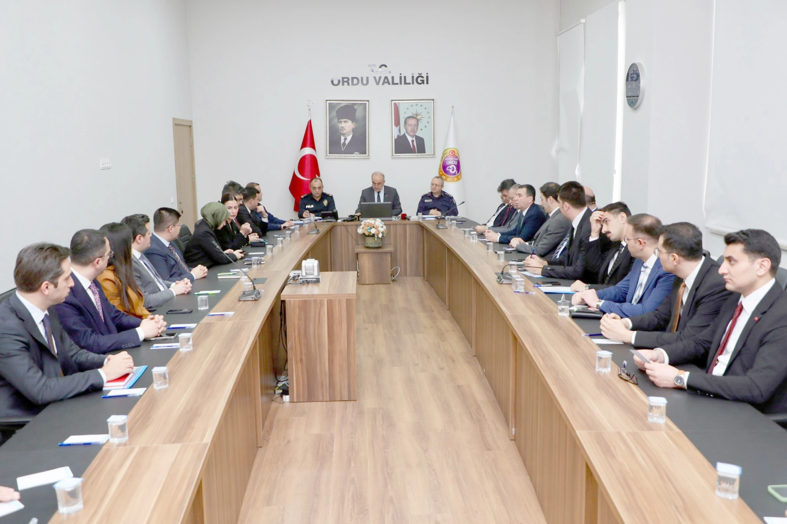 Valilik Toplantı Salonu’nda yapılan toplantıda, ilin genel güvenlik, asayiş ve trafik durumu kapsamlı şekilde değerlendirildi.Toplantıya Vali Yardımcısı Ayhan Durmuş, ilçe kaymakamları, İl Jandarma Komutanı Kıdemli Albay Sadi Akman, İl Emniyet Müdür Vekili Murat Petek, Ordu Sahil Güvenlik Karakol Komutan Vekili SG Üsteğmen Berkay Eren ile ilgili güvenlik birimlerinin yetkilileri katıldı.Her ay farklı bir başlığın ele alındığı toplantının bu ayki gündeminde kaçakçılık ve organize suçlarla mücadele çalışmaları yer aldı. İl Emniyet Müdürlüğü ve İl Jandarma Komutanlığı Kaçakçılık ve Organize Suçlarla Mücadele (KOM) Şube Müdürlükleri tarafından Ordu genelinde yürütülen faaliyetler hakkında detaylı sunum yapıldı.İl Emniyet Müdürlüğü KOM Şube Müdürü Emniyet Amiri Mehmet Yarlıgaç ile İl Jandarma Komutanlığı KOM Şube Müdürü Jandarma Teğmen Tolga İnci tarafından gerçekleştirilen sunumda; kaçakçılık ve organize suçlarla mücadelede ilin mevcut durumu, olayların ilçelere göre dağılımı, ele geçirilen malzemeler, icra edilen operasyonlar ve planlanan çalışmalar hakkında bilgi verildi.Toplantıda, güvenlik birimleri arasındaki koordinasyonun artırılması ve suçla mücadelede etkinliğin sürdürülmesi yönünde değerlendirmelerde bulunuldu.