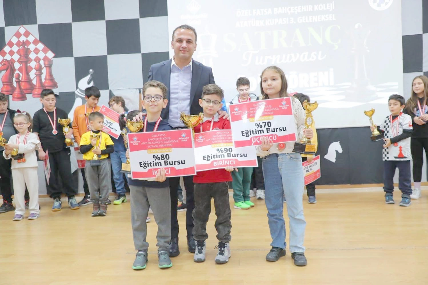 örene, Fatsa Belediye Başkanı İbrahim Etem Kibar, Gençlik ve Spor İlçe Müdürü Halil Bekyürek ve İlçe Milli Eğitim Şube Müdürü Mehmet Erdoğan da katılım sağladı. Başkan Kibar törende yaptığı açıklamada, gençlerin spor ve başarıya olan bağlılıklarının kendilerini gururlandırdığını belirtti. Kibar, “Geleceğimizin teminatı olan gençlerimizin sportmenlik ruhu, azmi ve başarıları bizlere her zaman gurur veriyor. Satranç gibi zeka ve strateji gerektiren bir branşta gösterdikleri özveri, ilçemizdeki spor kültürünün ne kadar güçlü olduğunun da bir göstergesidir” ifadelerini kullandı. Turnuvada emeği geçen tüm öğretmenler ve organizasyonda katkısı bulunan herkese teşekkür eden Başkan Kibar, dereceye giren öğrencileri de tebrik etti. Etkinlik, hem öğrencilerin hem de ailelerin yoğun ilgisiyle renkli görüntülere sahne oldu ve Fatsa’da gençler arasında satranç kültürünün yaygınlaştırılmasına önemli bir katkı sağladı.