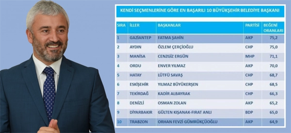 Ordu Büyükşehir Belediye Başkanı Enver Yılmaz, “Büyükşehirler Yerel Memnuniyet” araştırmasında en başarılı ve en beğenilen 4. Büyükşehir Belediye Başkanı oldu.