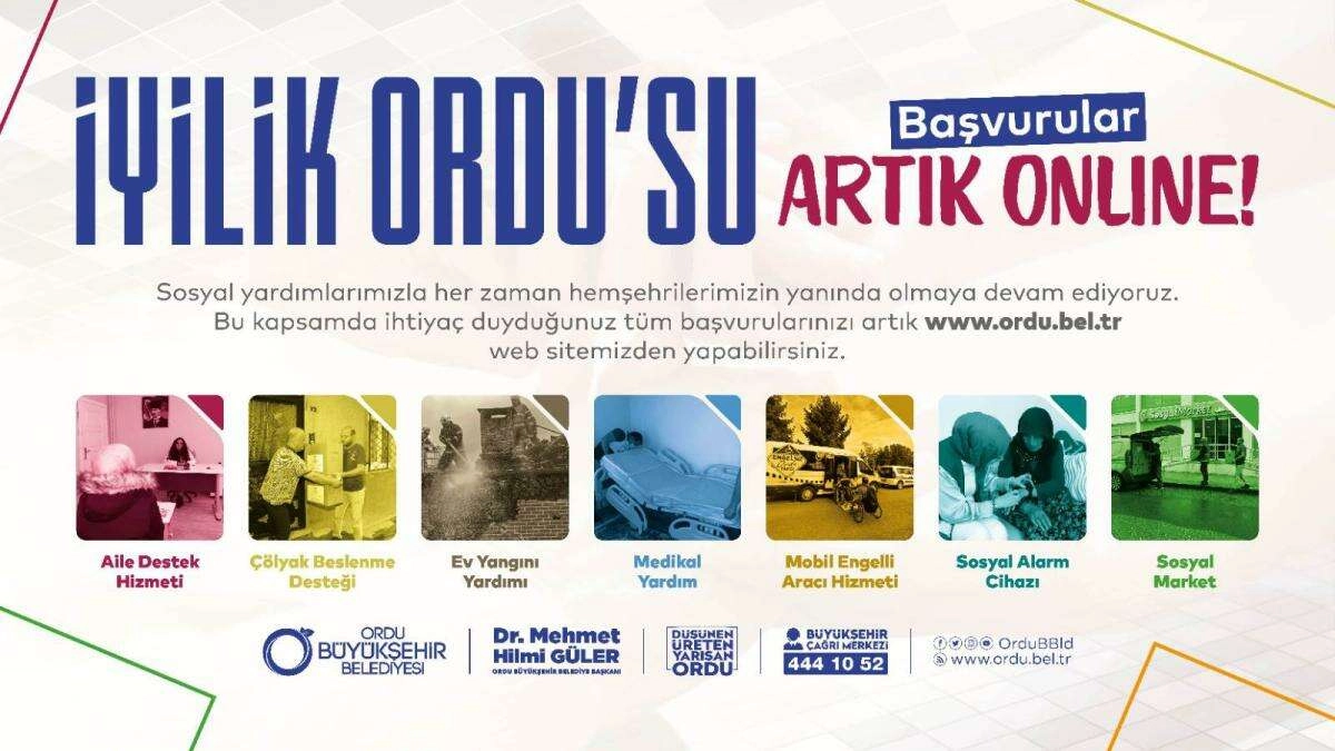 Sosyal Market, Aşevi, Aile Destek Merkezi hizmetlerinin yanı sıra ayni ve nakdi yardımlarla dezavantajlı vatandaşların yanında olan Büyükşehir Belediyesi bu yardımlarını daha ulaşılabilir kılmak için yeni bir uygulama başlattı. Hayata geçirilen Online Başvuru Sistemi ile vatandaşların Belediyeye gelmeden bir tık ile talepte bulunmaları sağlanacak. Hizmetlerden yararlanmak isteyen vatandaşlar ihtiyaçları için tek tıkla Büyükşehir Belediyesinin www.ordu.bel.tr web sitesi üzerinden Online Sosyal Yardım Başvuru sistemi ile talep edebilecek. Yapılan başvuruların sonuçlarıyine başvuru esnasında sistem tarafından oluşturulan başvuru numarasına göre Online Sosyal Yardım Başvuru Sonucu butonundan yada Ordu Büyükşehir Belediyesi Sosyal Hizmet Şube Müdürlüğünden öğrenilebilecek.