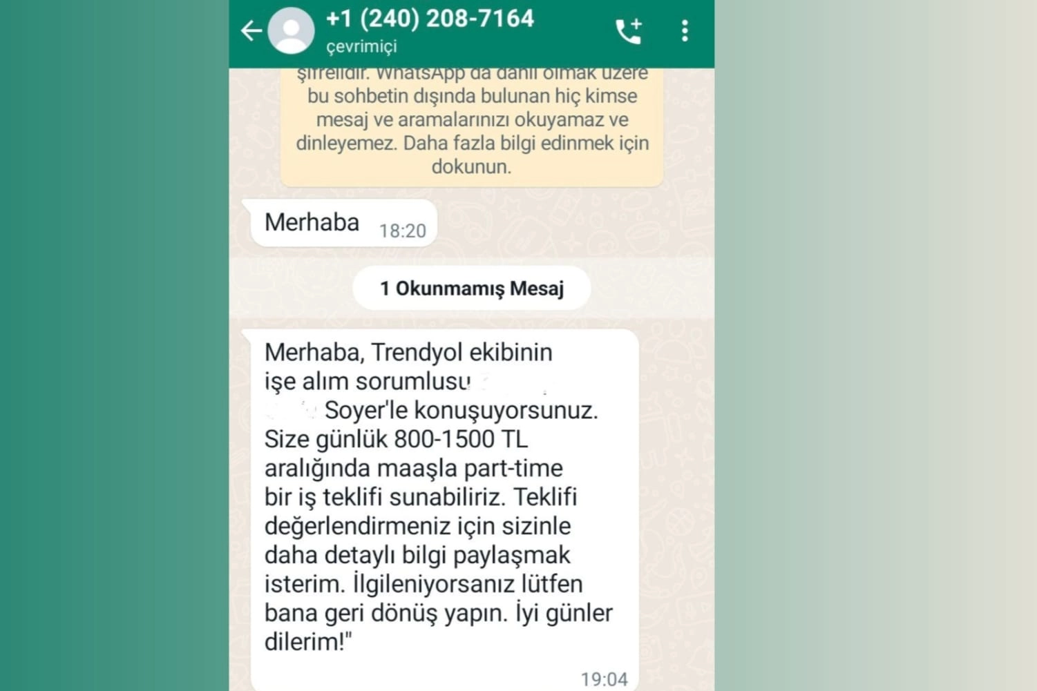 Son zamanlarda ülkemizin ünlü ve en çok kullanılan online alışveriş markasının adını kullanan dolandırıcılar, numarasına ulaşabildikleri vatandaşlara mesaj atarak kandırıyorlar. İş teklifi adı altında atılan mesajlara inanan geri dönüş yaparak ve kişisel verilerini aktaran vatandaşlar ise kimlik ve banka bilgileri dahil olmak üzere tüm verilerini kaptırıyorlar.