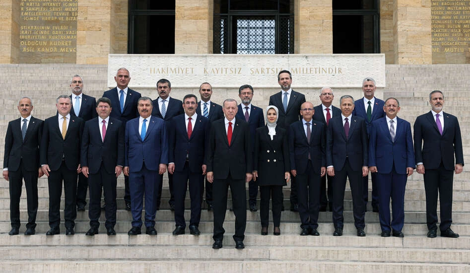 Cumhurbaşkanı Erdoğan ve kabine üyeleri, toplantı öncesinde Anıtkabir'i ziyaret etti. Cumhurbaşkanlığı Kabinesi üyeleri ile birlikte Anıtkabir’in merdivenlerinde basın mensuplarına görüntü veren Cumhurbaşkanı Erdoğan, daha sonra Misak-ı Millî Kulesi’ne geçerek Anıtkabir Özel Defteri’ne şunları yazdı: “Aziz Atatürk, Cumhurbaşkanlığı Hükûmet Sistemi’nin ikinci döneminde yeni kabine üyelerimizle birlikte huzurunuzdayız. Bugün kabinemizin ilk toplantısını yaparak, Türkiye Yüzyılı’nın inşası hedefiyle süratle yola çıkıyoruz. Türkiye Cumhurbaşkanı olarak kabinemizle birlikte tüm Türkiye’ye, 85 milyonun tamamına aşkla hizmet edeceğiz. Bizlere emanetiniz olan Cumhuriyetimizin 100. Yılına ulaşmanın heyecanını ve haklı gururunu yaşadığımız bu seneyi inşallah şahlanış dönemimizin başlangıç noktası hâline getireceğiz. Rabbim bizleri milletimize karşı mahcup etmesin. Ruhun şad olsun.”
