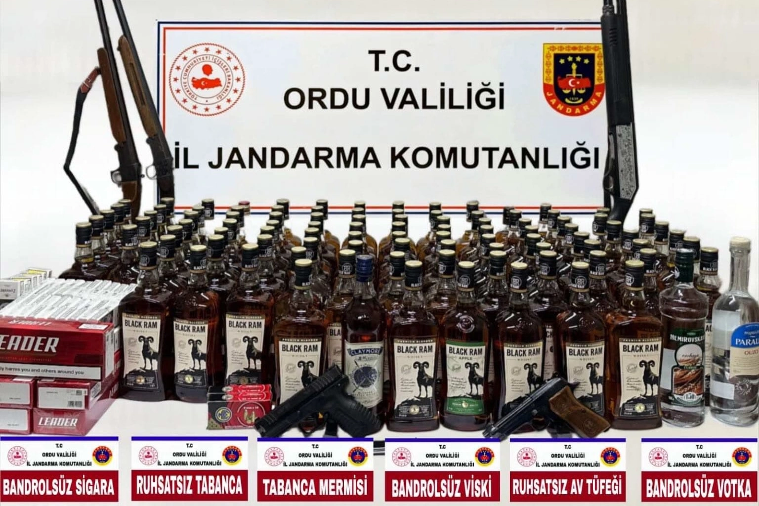 Ordu İl Jandarma Komutanlığı, yılbaşı emniyet tedbirleri kapsamında kaçak ve sahte alkol satışına yönelik yürüttüğü çalışmalar çerçevesinde Fatsa ilçesinde dikkat çeken bir operasyona imza attı. Kaçakçılık ve Organize Suçlarla Mücadele Şube Müdürlüğü ekiplerince 31 Aralık 2025 tarihinde gerçekleştirilen operasyonda, şüpheli B.H. (45) ve C.H. (65) isimli şahısların ev, iş yeri ve araçlarında arama yapıldı. Yapılan aramalarda adeta cephanelik ve kaçak depo ortaya çıktı. Operasyonda; 100 litre bandrolsüz kaçak viski, 1 litre bandrolsüz kaçak votka, 1 litre bandrolsüz kaçak rakı, 155 paket bandrolsüz kaçak sigara, 2 adet ruhsatsız tabanca, 4 adet tabanca şarjörü, 100 adet 9 mm tabanca fişeği, 3 adet ruhsatsız av tüfeği ele geçirildi. Ele geçirilen kaçak ürünlere ve silahlara el konulurken, olayla bağlantılı 2 şüpheli şahıs gözaltına alınarak adli makamlara sevk edildi. Ordu İl Jandarma Komutanlığı yetkilileri, yılbaşı öncesi ve sonrası halk sağlığını ve kamu güvenliğini tehdit eden kaçak alkol ve yasa dışı faaliyetlere karşı denetimlerin artarak devam edeceğini vurguladı.