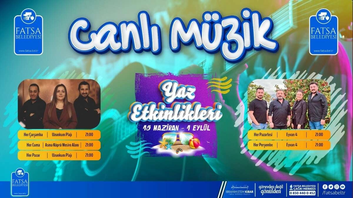 Kültür ve Sosyal işler Müdürlüğü yaz ayı süresince Uzunkum Plajı, Atatürk parkı Amfitiyatro, eyvan 4 ve Taşlıca Mesire alanında haftanın belirli günlerinde tiyatro etkinlikleri, çeşitli yarışmalar, animasyon gösterileri, ateşbaz gösterisi, interaktif tiyatro, canlı müzik gibi etkinlikler düzenleyecek. Etkinlikler; gündüz ve akşam çocuk ve yetişkinlere yönelik düzenleniyor. Gündüz plajda animasyon gösterileri, yarışmalar, akşam ise Eyvan 4 önünde, Uzunkum plajında, Atatürk Parkı Amfitiyatro’da çocuk ve yetişkinlere yönelik interaktif tiyatro gösterileri, parodiler, yarışmalar ve çocuk etkinlikleri düzenleniyor. Ayrıca akşamları Eyvan 4 ve Uzunkum Plajında canlı müzik gerçekleşecektir. “HEM ESAS İŞLER HEM DE SOSYAL ETKİNLİKLER” Yaz ayı boyunca Belediyemizin bir taftan esas işlerini canla başla sürdürürken bir taraftan da sosyal etkinlikler gerçekleştireceklerini belirten Fatsa Belediye Başkanı İbrahim Etem Kibar, “Geçen seneye nazaran bu sene çok daha güzel ve çok daha kapsamlı bir yaz etkinliği takvimi hazırladık. Haziran, Temmuz ve Ağustos ayı boyunca sürpriz konserlerimiz, açık hava yaz sinema etkinlerimiz, uçurtma şenliği, çocuklar için aksiyon dolu yarışmalar, birbirinden güzel etkinliklerimizle yaz boyunca dolu dolu programlar yapacağız.“ dedi. Haber; İslam DURAN
