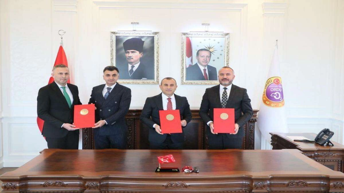 Kumru Atatürk Ortaokulu’na yapılacak 100 kişilik konferans salonu için Valilik makamında protokol imzalandı. Protokol imza töreninde bir konuşma yapan Vali Tuncay Sonel, “Sayın Cumhurbaşkanımızın liderliğinde, Milli Eğitim Bakanlığımızın ve hayırseverlerimizin desteğiyle son 2,5 yılda 57 okul, 790 dersliğe ulaşıldı. Okul binalarının yanında okul güçlendirmeleri yapıldı, kütüphaneler, spor salonları ilimize kazandırıldı. Kumru ilçemizden ve Ordu’muzun değerlerinden Erçal ailesinden iş insanımız Burhan Erçal bey de Kumru ilçemizdeki bir okulumuza 100 kişilik konferans salonu yapacaklar. Allah razı olsun kendilerinden. Allah böyle hayırsever iş insanlarımızın sayısını artırsın” şeklinde konuştu. 100 kişilik konferans salonunun protokol imza töreninde konuşan hayırsever iş insanı Burhan Erçal, “Kumru, bizim doğup büyüdüğümüz, ticari hayata başladığımız ilçedir. Doğup, büyüdüğümüz ilçemize imkânlarımız ölçüsünde hayır hasenat yapmaya çalışıyoruz. Daha önce bir 24 derslikli bir lise, cami ve imam evi yaptırmıştık. Şimdi de Kumru Atatürk Ortaokulu’na konferans salonu yaptıracağız. Bu hayırlı hizmete vesile olduğu için Sayın Valime teşekkür ediyorum” diye konuştu. Konuşmaların ardından, Kumru Atatürk Ortaokulu’na yapılacak 100 kişilik konferans salonunun protokolü, Vali Tuncay Sonel, İl Milli Eğitim Müdürü Mehmet Fatih Vargeloğlu ve hayırsever Erçal ailesi adına Erçallar A.Ş. Yönetim Kurulu Başkanı Burhan Erçal arasında imzalandı.