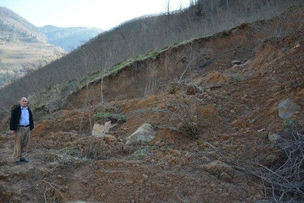 Kabadüz’de karların erimesiyle birlikte toprak kayması meydana geldi.