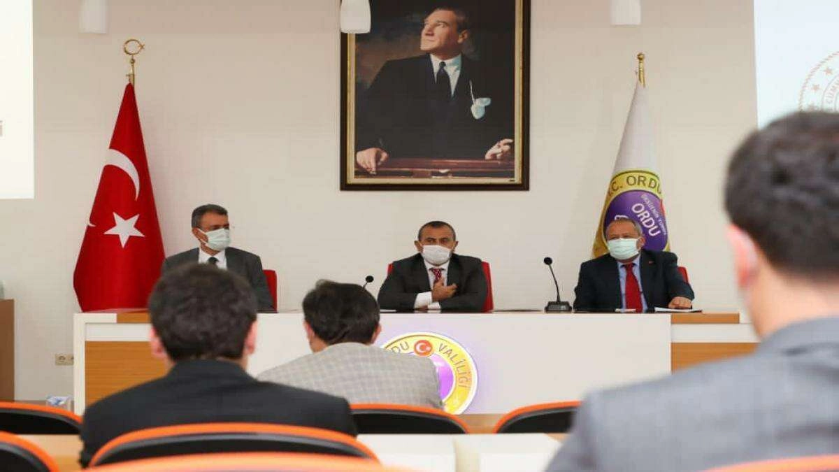Valilik Toplantı Salonu’nda, Vali Tuncay Sonel’in başkanlığında yapılan İl Pandemi Kurulu Toplantısına, Ordu Cumhuriyet Başsavcısı Mehmet Akif Aktaş, Ordu Büyükşehir Belediyesi Genel Sekreteri Coşkun Alp, Ordu Üniversitesi Rektör Yardımcısı Prof. Dr. Niyazi Taşçı, Vali Yardımcıları Ekrem Ballı, Bayram Gale, Zafer Karamehmetoğlu, İlçe Kaymakamları, İl Emniyet Müdürü Doğu Ateş, İl Jandarma Komutanı Kıdemli Albay Gazi Demir, İl Sağlık Müdürü Dr. Mustafa Kasapoğlu ile kurul üyeleri katıldı. İl Pandemi Kurulu Toplantısında, Covid-19 Pandemisi sürecinde ilimiz genelindeki son durum, alınan tedbirler, yapılan denetimler, pandemi ile mücadelede sürecinde uygulanan tedbirler ile yapılması gereken çalışmalar değerlendirildi. İl Pandemi Kurulu’nun üyesi olan ilçe kaymakamlarından ve ilgili kurum müdürlerinden, Cumhurbaşkanlığı Kararları, İçişleri Bakanlığı ve Sağlık Bakanlığı genelgelerinin, tüm kadro ile sahada tavizsiz uygulanmasını isteyen Vali Tuncay Sonel, “Dünya ülkelerinde olduğu gibi, havalarında soğumasıyla birlikte ülkemizde de Covid-19 vakalarında artış görülmektedir. Bu artışın önüne geçebilmek için Bilim Kurulunun önerileri doğrultusunda Cumhurbaşkanlığımızca, İçişleri ve Sağlık Bakanlığımızca alınan kararlar, tedbirler ve yeni önlemler, ilimizde sıkı bir şekilde uygulayacağız. Tüm ekiplerimizle birlikte sahada olacağız. Diğer taraftan, toplumumuzu bilgilendirme ve bilinçlendirme faaliyetlerine ağırlık vereceğiz. Sağlık çalışanlarımızın edindikleri tecrübeleri kamuoyu ile paylaşacağız. Düğün ve cenaze gibi kalabalık oluşturacak ortamlardan uzak duracağız. Ve altın kuralımız olan maske, mesafe ve temizliğe özen göstermeye devam edeceğiz. Kış aylarına girmekte olduğumuz ve daha çok kapalı mekanlarda vakit geçireceğimiz bu günlerde, bu aylarda çok daha dikkatli ve hassas davranmalıyız. El birliği ve güç birliği ile Covid-19 salgınının yayılmasını önlemede başarılı olacağımıza yürekten inanıyorum” dedi. Toplantıya katılan İl Pandemi Kurulu üyelerinin görüş, öneri ve düşüncelerini de dinleyen Vali Tuncay Sonel, bir eylem planı dahilinde Ordu’da Koronavirüse karşı etkili bir mücadele yürütüleceğini sözlerine ekledi.
