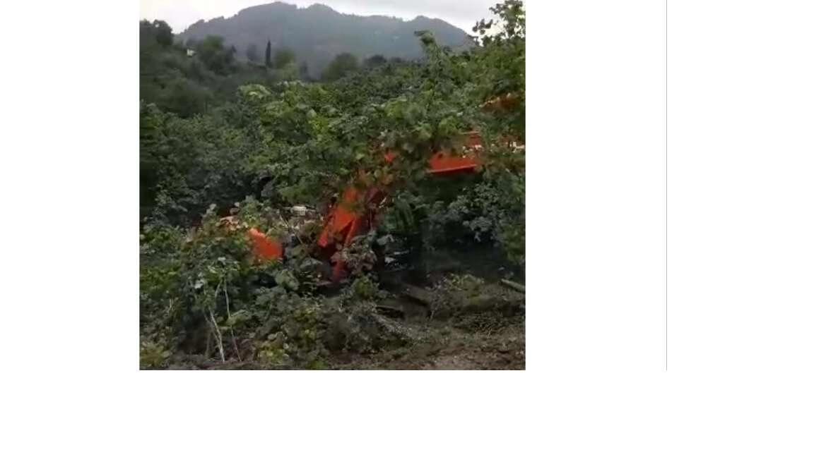 Ünye’nin Gölceğiz Mahallesi’nde iş makinesi fındık bahçesine uçtu. Kazadan makine operatörü şans eseri yara almadan kurtuldu.