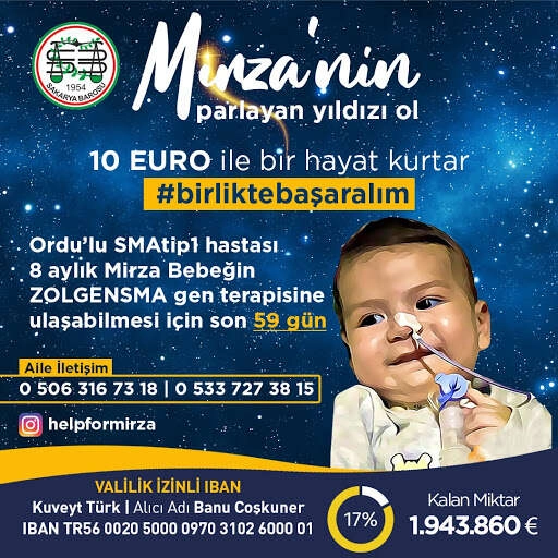 Aile bir süredir çocuklarının tedavisi için yardım topluyor. Ancak gerekli olan miktara ulaşılamadı. Çaresiz baba Barış Kılıç evladının tedavisi için evini ve otomobilini satışa çıkarttı. Altınordu’da yaşayan Miraz Kılıç SMA Tip 1 hastası ve tedavi olması gerekiyor. Mirza Bebek, tıpkı Demir Ali gibi SMA Tip 1 hastası. Halen Ankara Şehir Hastanesi’nde tedavisine devam edilen Mirza Bebeğin anne ve babası, sizlerin desteğiyle yavrularının sağlığına kavuşacağı günleri bekliyor. Mirza Bebek, Ankara Şehir Hastanesi’nde tedavi altında bulunuyor. Henüz resmi izinler tam olarak alınmamasına rağmen gerekli olan paranın yüzde 3’ü toplanmış durumda. Ordulu Barış ve Aslı Kılıç’ın yavruları Mirza bebek, bebekliğini yaşamak ve hayata tutunmak için o küçücük bedeniyle büyük bir mücadele veriyor. Halen Ankara Şehir Hastanesi’nde tedavi altında bulunan Mirza bebeğin Annesi Aslı Kılıç, yaşadıkları bir günü anlattı. ANNE ASLI KILIÇ BİR GÜNLERİNİ ANLATTI Mirza’nın yanından bir an bile ayrılmayan Anne Aslı Kılıç, “Mirza sabahlar Biraz kötü uyanıyor. Solunum sıkıntısı olduğu için balgamını atamıyor. Ciğerleri sıkışıyor. Ağzından beslenemiyor. Ağzından yemek ve su dahi alamıyor. Burnunda ufak bir hortumu var, onunla besleniyor. Mamaları var, ben mamalarını burnundan şırınga ile saat başı veriyorum. Ağzından, burnundan sekresyonları çekmek için makine var. Hortumla onları çekiyorum. Bunun için de sırtına vurmam gerekiyor. Buda onun çok canını acıtıyor. Bizim 24 saatimiz böyle geçiyor." SİZLERİN DESTEĞİNİ BEKLİYOR Çocuklarının sağlığına kavuşması için kampanya başlattıklarını söyleyen Baba Barış Kılıç, Ankara ve Ordu arasında gidip geliyor. Baba, “Şuanda kampanya iyi gidiyor. Gerekli izinleri almak için uğraşıyoruz. Pandemi nedeniyle henüz sahaya tam olarak inemedik ama pandemi bittikten ve gerekli izinleri aldıktan sonra Orduluların destekleriyle birlikte kampanyamıza daha hızlı bir şekilde devam edeceğimize inanıyorum. Şu anda yüzde 3’lük bölümü tamamlayabildik. Henüz daha hiçbir yere müracaat etmeden paylaşım yapamadığımız halde güzel bir oran. İnşallah gerekli izinleri tamamladıktan sonra daha hızlı bir şekilde sahada olacağız.” Daha doğar doğmaz kendini yaşam mücadelesinin içinde bulunan Mirza Bebek, hayata tutunmak için sizlerin desteğini bekliyor. Demir Ali’de olduğu gibi Mirza Bebekte de Ordu’nun tek yürek olacağını ve 6 aylık Mirza’ya gereken gücü ve desteği vereceğinizden en ufak bir kuşkumuz dahi yoktur. Mirza bebeğe destek olmak için ve kampanya süreciyle ilgili gelişmeleri İnstagram’da @helpformirza adresi üzerinden takip edebilir, tedavi için katkıda bulunabilirsiniz. Mirza’mızın TL hesabı Akbank TR67 0004 6002 3088 8000 2436 11 ALICI: BANU COŞKUNER