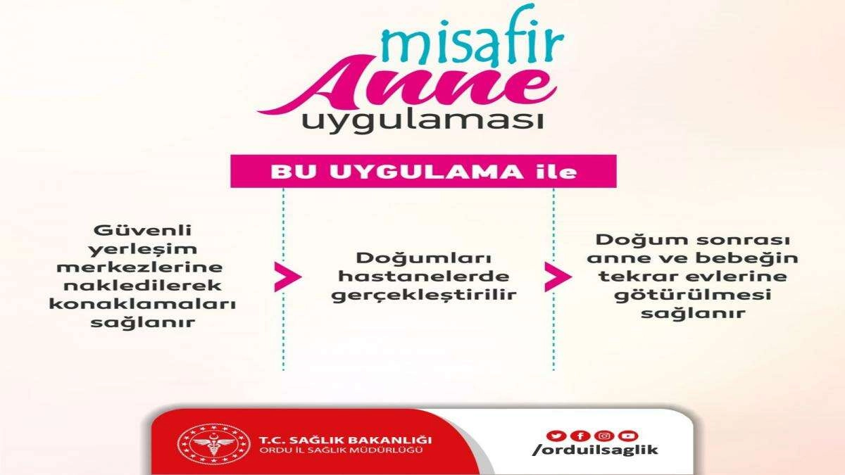 Bu proje kapsamında Aile Hekimlikleri ve Toplum Sağlığı Merkezlerince; iklim ve yol şartları sebebiyle ulaşımı zor yerlerde yaşayan, sosyal sebeplerle doğum esnasında sağlık kurumuna erişimde problem yaşayabilecek gebeler ve riskli gebeler tespit edilmektedir. Söz konusu gebeler evlerinden alınarak, ambulans ve diğer nakil araçlarıyla hastaneye getirilmekte, doğum oluncaya kadar misafir edilmekte ve doğum sonrası annenin ve bebeğinin evlerine güvenle ulaşmaları sağlanmaktadır. Böylece anne ve bebek ölümleri ya da çeşitli sağlık sorunlarının önüne geçilmektedir. Bu kapsamda 2021 yılında doğumu riskli olabilecek tüm gebeler davet edilmiş ve daveti kabul eden 52 gebenin konaklaması sağlanarak doğumları hastanede gerçekleştirilmiştir. 2022 yılı Ocak ayında ise 16 gebenin konaklaması sağlanarak doğumları hastanede gerçekleştirilmiştir. Bu hizmetlerimizi sağlamak için ihtiyaç durumuna bağlı olarak, ilimizde Ordu Üniversitesi Eğitim Araştırma Hastanesi Ek Hizmet Binasında ayrıca Fatsa, Ünye ve Aybastı Devlet Hastanelerinde bulunan Anne Misafirhanelerinde gebelerimizi misafir ediyoruz. Misafir Anne Projesi kapsamında öncelikle il genelinde, Ordu Valiliği, Ordu Büyükşehir Belediyesi, Karayolları İl Müdürlüğü, Meteoroloji İl Müdürlüğü, İlçe Belediyeleri gibi kamu kurum ve kuruluşlarıyla iletişime geçildi. Kötü hava ve yol şartlarından dolayı yıl boyunca veya yılın belirli aylarında yollarının kapanması ya da ulaşımı kısıtlı olması ihtimali olan yerleşim merkezleri tespit edilip, tüm yerleşim yerlerini ve karayollarını gösterir bir risk haritası oluşturuldu. 1) İl genelindeki tüm gebeler tek tek tespit edilip takipleri yapılmaktadır. 2) Kar yağışı, yolların kapanması, ücra ve ulaşılması sorun olabilecek yerlerde yaşayan tüm gebeler ile konuşulup Misafir Annelik Davetini kabul etmesi için gerekli bilgiler verilmektedir. 3) Risk haritası çalışmasında ulaşım problemi yaşaması muhtemel olarak belirlenen yerleşim birimlerinde belirlenen tüm gebeler muhtemel doğum tarihlerine göre sıralanarak gerekli tıbbi bilgileriyle kayıt altına alınmaktadır. 4) Kayıt altına alınan gebelerin, gebeliklerinin son izleminde, doğumun nerede yapılacağı planı gebe ve yakınlarıyla beraber yapılmaktadır. 5) İl genelinde tüm kamu kurum ve kuruluşlarıyla koordinasyon içinde çalışılmaktadır. Son ayına girmiş olan tüm gebelerin adres ve iletişim bilgileri 112 Komuta Kontrol Merkezleri ile paylaşılmaktadır. Daveti kabul eden gebeler muhtemel doğum tarihleri yaklaşırken konaklama merkezlerine (hastanelere veya kamu misafirhanelerine, otellere) nakledilerek burada misafir edilmekte ve doğum zamanı geldiğinde doğumları hastane ortamında gerçekleştirilmektedir. Daveti kabul etmeyenlerden ise konuyu ve riskleri anlayıp kabul ettiğine dair imzalı tutanak alınmakta ve izlemlerine devam edilmektedir.