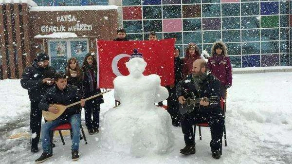 Fatsa’da Fatsa Gençlik Merkezi çalışanları ve öğrencileri kardan Seyit Onbaşı büstü yaptı.