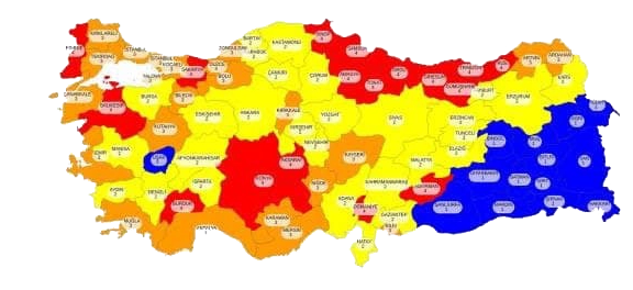 100 bin nüfusa düşen vaka sayısı başta olmak üzere çeşitli kriterlere göre illerimizi sınıflandırıldı. 81 vilayet renklere ayrıldı. Her hafta risk durumuna göre değerlendirilecek. Valiliklerimiz başkanlığındaki il hıfzıssıha kurulu yeni düzenlemelere girecek. İlleri mavi-sarı-turuncu-kırmızı diye sınıflandırıldı. Tedbirlerin sıkılaştırılması veya gevşetilmesi kararı iyileşme veya kötüleşme durumuna göre verilecek. - Her hafta risk durumuna göre illerin renkleri tespit edilecek. 2 Haftada bir normalleşme uygulaması güncellenecek. Mavi Düşük, Sarı Orta, Turuncu Riskli, Kırmızı çok riskli illeri temsil edecek. - Hafta sonu sokak kısıtlaması düşük ve orta riskli illerde kalkarken, yüksek ve çok yüksek riskli yerlerde devam edecek. - Akşam 21.00-Sabah 05.00 saatleri arasında kısıtlama devam edecek. - Kapalı işyerleri çok yüksek riskli iller dışında sabah 07.00-19.00 saatleri arasında yüzde 50 kapasite ile faaliyetlerini sürdürebilecek. - Kamunun çalışma saatleri tüm Türkiye'de normale döndürülecek. - Yüksek riskli illerde Sokağa çıkma saatleri sınırlı olan 65 yaş üstü ve 20 yaş altı vatandaşlarımızın kısıtlama saatleri genişletilecek. - Nikah ve merasim şeklindeki düğünler yüksek ve çok riskli bölgelerde 50 kişiyi geçmeden ve 1 saati aşmadan yapılabilecek. - 8. Ve 12. Sınıflarda tüm illerde yüz yüze eğitim edecek. Düşük ve orta riskteki illerde diğer kademelerde de eğitime başlanacak. Cumhurbaşkanlığı Kabine Toplantısı sonrasında alınan kararlar doğrultusunda her alanda olduğu gibi eğitim ve öğretimde de il bazlı olarak yerinde karar uygulamasına başlanılmıştır. Bu kapsamda, 2 Mart Salı günü itibariyle tüm okul öncesi eğitim kurumlarında, ilkokullarda, 8 ve 12. sınıflarda ülke genelinde yüz yüze eğitime başlanılacak. Düşük ve orta riskli olarak tanımlanan illerde tüm okul öncesi eğitim kurumlarında, ilkokullarda, ortaokullarda ve liselerde yüz yüze eğitim gerçekleştirilecektir. Düşük ve orta riskli olarak tanımlanan illerde yüz yüze eğitime; Okul öncesi eğitim kurumlarında tam zamanlı, İlkokullarda seyreltilmiş sınıflarda haftada iki (2) gün, Ortaokul 5, 6, 7. sınıflarda seyreltilmiş gruplar halinde haftada iki (2) gün, Ortaokul 8. sınıflarda seyreltilmiş gruplar halinde haftada 12-22 saat, Lise hazırlık, 9. 10. 11. sınıflarda seyreltilmiş gruplar halinde haftada iki (2) gün, Lise 12. sınıflarda seyreltilmiş gruplar halinde haftada 16-24 saat olacak şekilde yüz yüze eğitime başlanacaktır. Yüksek ve çok yüksek riskli olarak tanımlanan illerde yüz yüze eğitime; Okul öncesi eğitim kurumlarında tam zamanlı, İlkokullarda seyreltilmiş gruplar halinde haftada iki (2) gün, 8. sınıflarda seyreltilmiş gruplar halinde haftada 12-22 saat, 12. sınıflarda seyreltilmiş gruplar halinde haftada 16-24 saat olarak başlanacaktır. Özel gereksinimli öğrenciler için hizmet veren özel eğitim okul ve sınıfları ülke genelinde tam zamanlı olarak yüz yüze eğitime başlayacaktır. Yüz yüze eğitime başlayacak tüm okul kademeleri ve sınıf düzeylerinde eğitim 2 Mart Salı gününden itibaren başlayacaktır. Liselerdeki sınavlar 8 Mart Pazartesi gününden itibaren tüm illerimizde salgın tedbirleri çerçevesinde yüz yüze gerçekleştirilecektir. Köy ve seyrek nüfuslu yerleşim yerlerindeki eğitim kurumlarında mevcut kararlar uygulanmaya devam edecektir. Yüz yüze eğitim kapsamı dışındaki uygulamalarda uzaktan eğitime devam edilecektir. Yüz yüze eğitime katılım bütün illerde veli rızasına bağlı olarak gerçekleştirilecek.