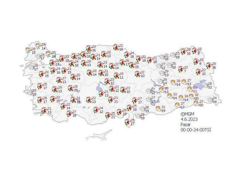 Parçalı ve çok bulutlu, aralıklı sağanak ve gök gürültülü yağışlı geçeceği tahmin edilirken, Yağışların iç kesimlerde yerel kuvvetli olması bekleniyor. Afyonkarahisar, Ankara, Amasya, Bolu, Çankırı, Çorum, Eskişehir, Isparta, Kastamonu, Kayseri, Kırşehir, Konya, Kütahya, Nevşehir, Ordu, Sakarya, Samsun, Sinop, Sivas, Tokat, Uşak, Yozgat, Zonguldak, Kırıkkale, Bartın, Karabük ve Düzce için sarı kodlu uyarı verildi