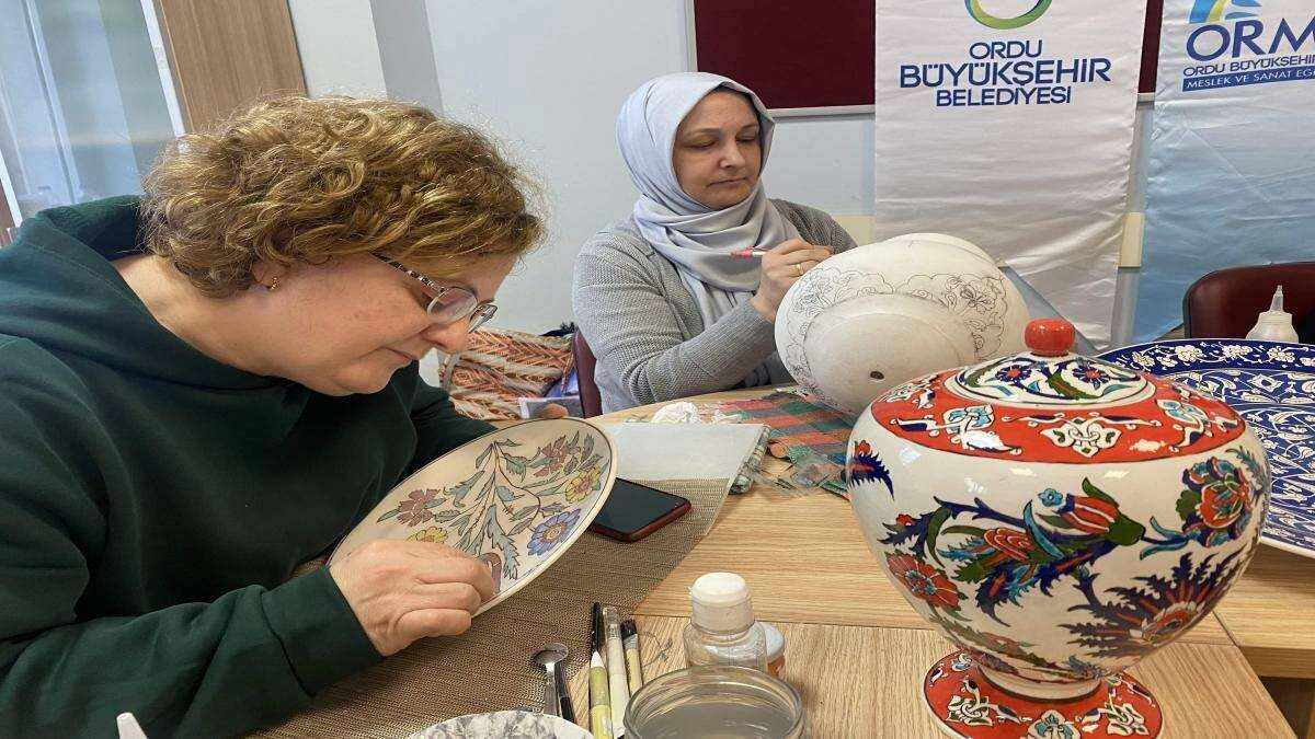 Geleneksel el sanatlarından Çinicilik Ordulu kadınların elinde yeniden hayat buluyor.