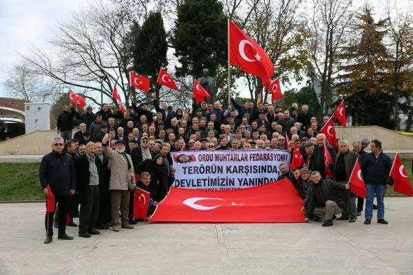Ordu’da 19 ilçede görev yapan muhtarlar terör olaylarını protesto için yürüyüş düzenledi.