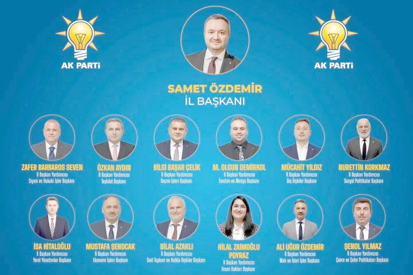 AK Parti Ordu İl Başkanı Samet Özdemir, partisinin yeni il yürütme kurulunu açıkladı. Özdemir, paylaşımında yeni kadronun Ordu için hayırlı olmasını diledi. Özdemir sosyal medya hesabı üzerinden yaptığı paylaşımda şu ifadelere yer verdi, “AK Parti Ordu İl Yürütme Kurulumuzun partimize ve Ordu’muza hayırlı olmasını diliyorum. Allah’ın izniyle birlik ve beraberlik içinde çalışarak şehrimize hizmet edecek, hemşehrilerimize faydalı olacak güzel işlere imza atacağımıza inanıyorum” dedi. Özdemir, Ordu’nun davalarına ve Cumhurbaşkanı Recep Tayyip Erdoğan’a desteğini güçlendirmek için hep birlikte çalışmaya devam edeceklerini ifade etti.