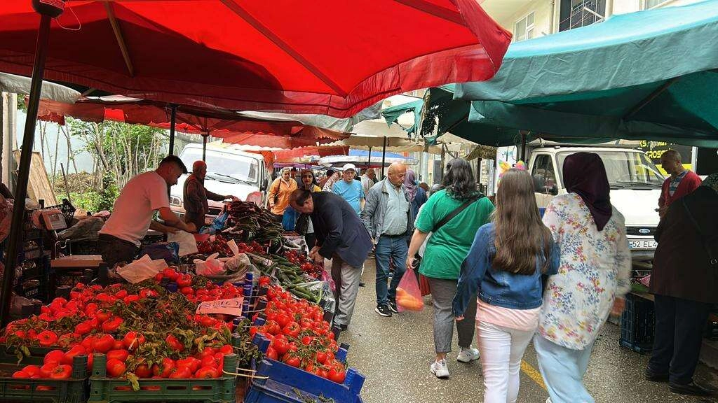 Fiyatlar vatandaşın yüzünü güldürürken esnafta satışlardan memnun kaldı. Ilçemizde her hafta cumartesi günleri kurulan semt pazarlarında fiyatlar yaz gelmesiyle birlite düşmeye başladı. Tezgahlarda kilosu 40 liradan en yüksek çilek satılırken, en düşük fiyat ise kilosu 10 lira olan patlıcan oldu. Pazarında ise fiyatlar şu şekilde tezgahlara yansıdı; Patlıcan 10 TL, domates ve salatalık 15 TL, soğan 10TL, patates 15 TL, biber 15 TL, fasulye 20 TL, çilek 40 TL, kiraz 30 TL, dolmalık biber 12,50 TL, erik 10 TL, muz 20 TL, kayısı 20 TL, şeftali ise 20 TL’den satışa sunuldu. Pazara alışverişe gelen tüketicilerin yüzleri gülerken şunları söylediler: ’Geçtiğimiz ay fiyatlar daha pahalıydı bu hafta tezgahta fiyatlar oldukça uygun. Biz de bunu değerlendirip alışverişimizi dolu dolu yapıyoruz.” ifadeleri kullandı.