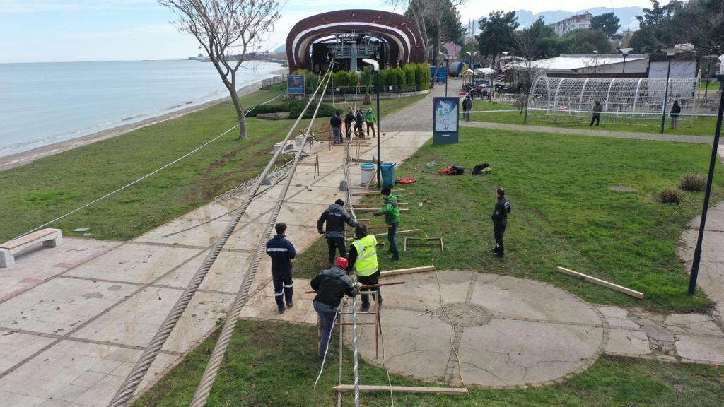 Gerekli bakım ve değişimin yapılması için güvenlik tedbirlerince bir süredir vatandaşların hizmetine kapatılan teleferik hattındaki çalışmalar Ordu Büyükşehir Belediyesi ve imalatçı İtalyan firmasının ortaklaşa çalışması ile sürdürülüyor. Bu kapsamda ekipler, geçtiğimiz günlerde teleferik hattında çeşitli çalışmalar gerçekleştirmesinin ardından şimdi de eski halatı indirerek yeni halatın çekilmesi çalışmalarını yürütüyor. Görevli personelin iş sağlığı ve güvenliğinin ön planda tutulduğu çalışmaların bitirilmesi ile birlikte teleferik hattıvatandaşların hizmetine açılması planlanıyor.