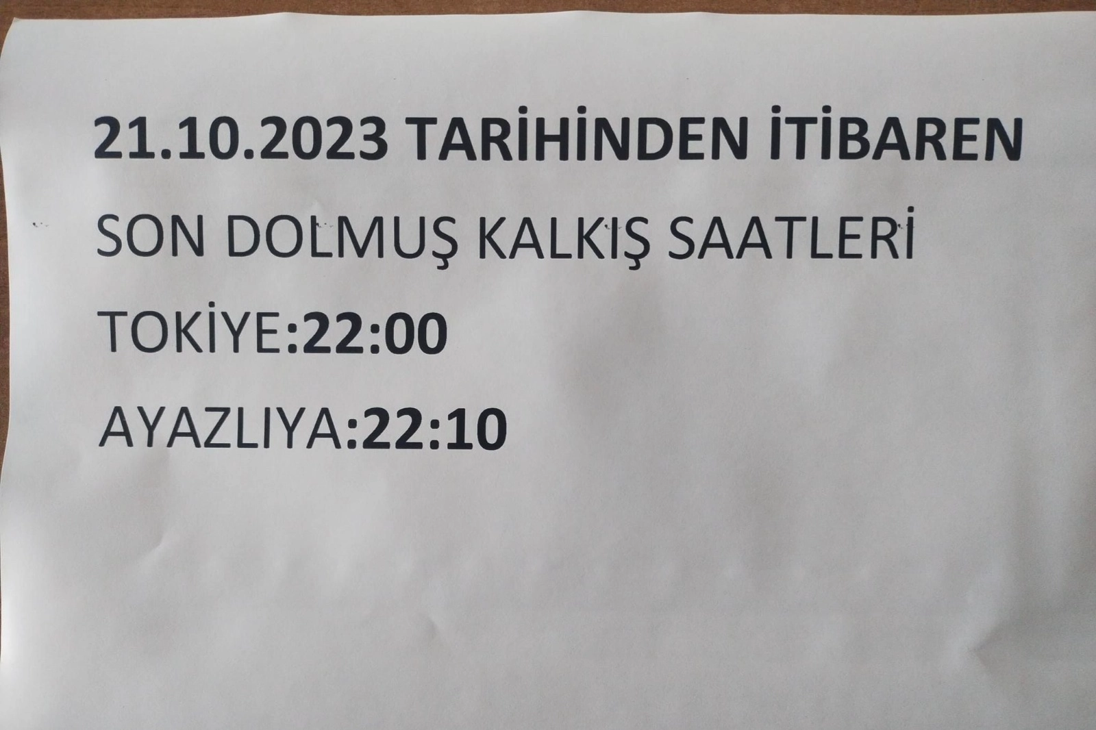 İlçede Toki, ilçe merkezi ve Ayazlı arasında vatandaşların ve öğrencilerin kullandığı TOKİ Dolmuş Durağı, kış dönemine girerek son dolmuş kalkış saatlerinde değişikliğe gitti. Yeni saat uygulamasına göre 21 Ekim 2023 Cumartesi gününden itibaren TOKİ’ye son dolmuş 22:00’de kalkarken; Ayazlı Mahallesine ise 22:10’da kalkacak.