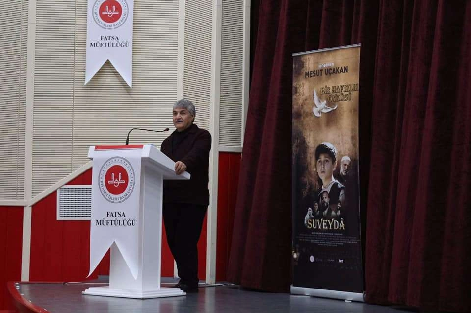 Suveyda Filmi, hafız olmak isteyen 11 yaşındaki Hadim'in öğrenme aşkını, azmini, umudunu, hayallerini beyaz bir güvercinle kurduğu muhabbeti ve Süleyman Peygamber gibi kuş dili öğrenme çabalarını konu alıyor. İlçe Müftüsü Hamza Bayram selamlama konuşmasında Kur'an Kurslarında Hafızlık yapan öğrencileri milli ve manevi gelişimlerine katkı sunmak, hafızlık müessesesinin değerini anlatmak amacıyla bu programı tertip ettiklerini ifade ederek, programa katılımı dolayısıyla Yönetmen Mesut Uçakan'a teşekkür etti. "SUVEYDA" filminin gösteriminin akabinden hafızlarla bir söyleşi gerçekleştiren Yönetmen Uçakan, 2019'un yaz aylarında çekilen filmin, 1930'lu yıllarda hafız olmaya çalışan bir çocuğun gözünden Türkiye'nin bir döneminde yaşananları ele aldığını söyledi. Senaryonun gerçek olaylardan yola çıkarak kaleme alındığını aktaran Uçakan, "Hayata bakış biçimi olarak, ben yaptığım her şeyin hesabını verme idraki, heyecanı ve korkusu içerisindeyim. Bu projede de hakikaten beni çok etkileyen bir çizgi var. Bir çocuk hafız olmaya çalışıyor fakat bunu engelleyen bir durumla karşılaşıyor. Başrol oyuncusu, 11 yaşındaki Necip Fazıl Belge'nin gerçek hayatında hafız olduğunu, hafızlık yarışmalarında ödüller aldığına işaret eden Yönetmen Uçakan kendisini Hafızlarla buluşturan Fatsa Müftüsü Hamza Bayram'a teşekkür etti. Program hediye ve çiçek takdimiyle sona erdi.