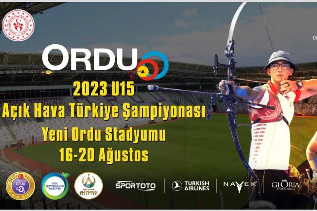 U15 Açık Hava Türkiye Okçuluk Şampiyonası 16-20 Ağustos 2023 tarihleri arasında Yeni Ordu Stadyumu’nda gerçekleşecek.