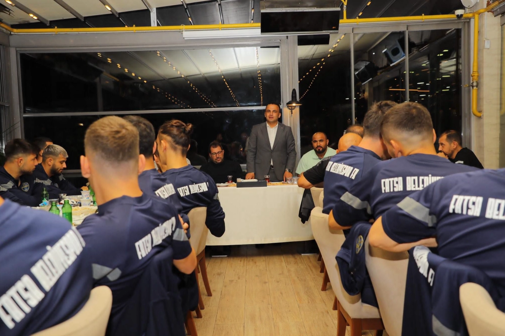 Dün akşam Fatsa Belediyespor oyuncularına maç öncesi motivasyon için yemek programı düzenlendi. Fatsa Belediye Başkanı İbrahim Etem Kibar’ın ev sahipliğinde düzenlenen programda oyunculara moral konuşması yapan Başkan Kibar, “Sporun ve dayanışmanın gücünü bir kez daha hissetmek için bir aradayız. Fatsa’mızın gururu, gönlümüzün değişmez şampiyonu Fatsa Belediyespor'umuzun futbolcuları ve yönetim kurulu ile bir araya gelerek yarın oynanacak olan maç öncesi başarılar diledik. Şehrimizin marka takımı Fatsa Belediyespor’umuzu hakettiği noktaya taşımak için elimizden geleni yapacağız. Yarın oynanacak olan maçımız için heyecan dorukta! Takımımıza ve yönetimimize başarılar diliyorum.”dedi.