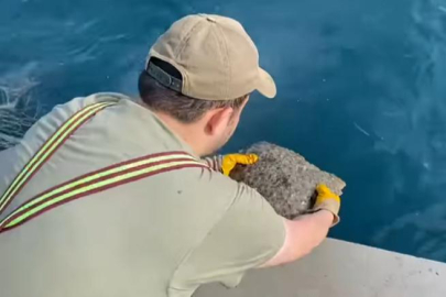 Bu kapsamda denizde yapılan denetimde 3 adet kalkan ağına el konuldu. Ağlara takılan 2 adet canlı vatoz balığı ve 2 adet canlı kalkan balığı ise tekrar denize bırakıldı.