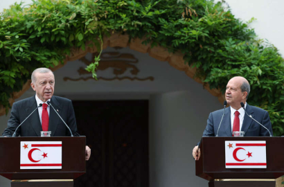 Cumhurbaşkanı Recep Tayyip Erdoğan ve Kuzey Kıbrıs Türk Cumhuriyeti (KKTC) Cumhurbaşkanı Ersin Tatar gerçekleştirdikleri baş başa ve heyetler arası görüşmelerin ardından ortak basın toplantısı düzenledi.