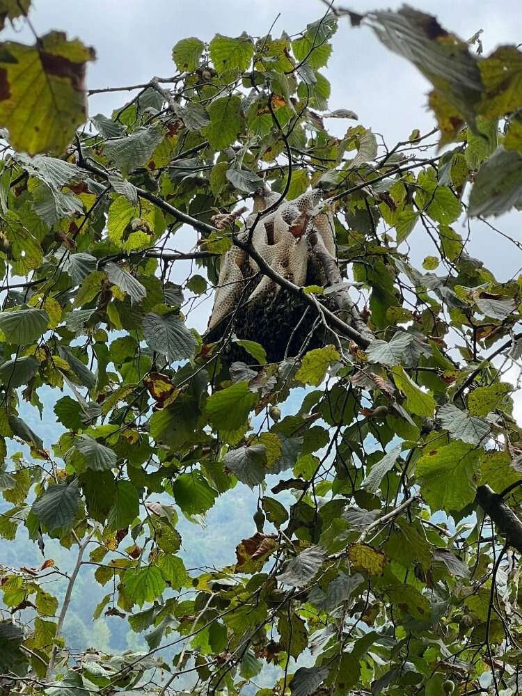 Günün erken saatlerinde bahçesine giren üretici, ilerledikçe arı vızıltılarının ve alanda arıların çokluğunu fark etti. Biraz daha ilerleyen bahçe sahibi bir fındık ocağının üstüne doğru baktığında koca arı peteğini ve üzerindeki arı kolonisi gördü.