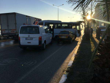 Edinilen bilgiye göre, Fevzi Çakmak Mahallesi Devlet Sahil Yolu'nda özel bir servis aracı yolun sağında durup işçileri aldığı sırada karşı yönden gelen 61 K 6636 plakalı kamyon buzlanma nedeniyle duramayıp servis aracına çarptı. Çarpmanın etkisiyle servis aracı da geriye doğru giderek arkasında duran 52 T 5138 ve 52 LJ 029 plakalı araçlara çarptı.
