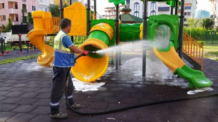 Öte yandan yapılan hijyen çalışmalarıyla hastaneler, parklar, yeşil alanlar ve vatandaşın yoğunlukla kullandığı ortak alanlar insana çevreye ve doğaya zararsız özel solüsyonlar ile periyodik olarak yıkanıyor.