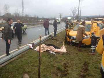 Ünye Çevre Yolu'nda Samsun istikametinden Ordu istikametine giden ve Giresun’un Görele ilçesi Şoförler Otomobilciler Esnaf Odası Başkanı Muzaffer Kefal iradesindeki 28 T 6067 plakalı ticari taksi, İkizce Kavşağı mevkiinde direksiyon hamiyetini kaybetmesi sonucu refüje bindirdi. Kazada Muzaffer Kefal’in eşi Elif Kefal (39) olay yerinde yaşamını yitirdi. Aynı kazada Muzaffer Kefal, Feyyaz Kefal ve Ali Kefal yaralandı.