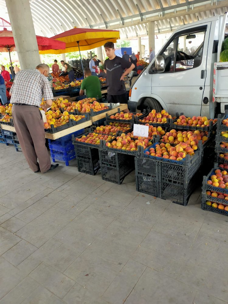 Üzüm 20, şeftali 20, kiraz 30, lahana tane 40, patates 15, soğan 15, fasulye 25, biber 25 – 30, domates salatalık 15 liradan satışa sunuluyor.