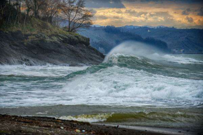 Karadeniz'de şiddetli rüzgar nedeniyle dev dalgalar oluştu.