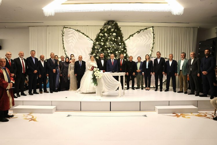 Protokol anlamında katılımın yoğun olduğu düğün merasiminde genç çiftin nikah şahitleri oldukça kalabalıktı.