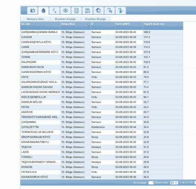 Meteoroloji 10. Bölge Müdürlüğü'nün verilerine göre; bölgemizde en çok Samsun Çarşamba Çakmak Barajı mevkii yağış aldı. Ordu'da ise 78 mm ile Ünye en çok yağış alan ilçe oldu. Fatsa'ya son 24 saatte 42.4 mm yağış düştü. Meteorolojiden göre bugün ve yarın da yağışlar devam edecek.