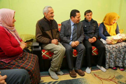İlk ziyaretini İlçenin Haşal mahallesinde yaşayan ve 8 yıldır çocuk özlemi çeken Özlem-Murat Bulut çiftinin evine yapan Vali İrfan Balkanlıoğlu, aile ile bir süre sohbet ederek, Aleyna ismi verilen bebeğe hayırlı ve sağlıklı bir ömür dileğinde bulundu.