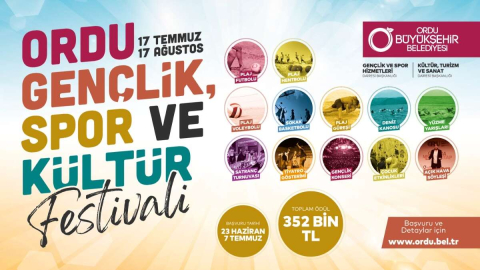 Ordu Büyükşehir Belediyesi tarafından düzenlenecek olan Gençlik Spor ve Kültür Festivali ile Ordulular spor ile kültür etkinliklerini bir arada yaşayacak.