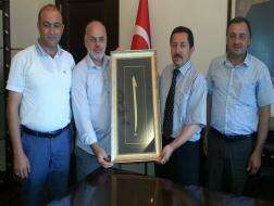 Çorum İmam Hatip Lisesi’nden okul arkadaşı olan Yüksel Şahin ile Şerif Şahin ve beraberinde veteriner hekim Fahrettin Özkan ve Ünye-Kadılar Mahallesi Muhtarı Şener Karakullukçu’yu makamında ağırlayan Vali Balkanlıoğlu, bol bol okul anılarını tazeledi. Yıllar sonra okul arkadaşlarıyla bir arada olmaktan mutluluk duyduğunu belirten Vali Balkanlıoğlu, kendilerine teşekkür etti. Okul arkadaşı Yüksel Şahin de Vali Balkanlıoğlu’na ziyaretin anısına hat sanatı ile yazılmış ve Kur’an-ı Kerim alfabesinin ilk harfi olan ‘Elif’ tablosu hediye etti.