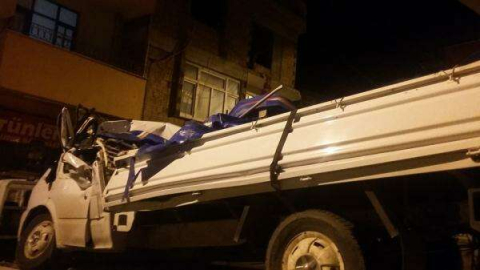 Edinilen bilgiye göre, seyir halindeki kamyonetin üzerine, dağdan kopup gelen kaya parçası düştü.