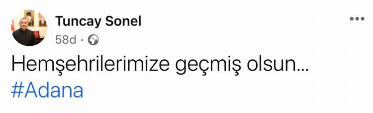 Adana'nın Kozan ilçesinde bu sabah saat 08.44'te 5,5 büyüklüğünde korkutan depremle ilgili Ordu Valisi Tuncay Sonel geçmiş olsun mesajı yayımladı. Vali Sonel yaptığı paylaşımda: “Hemşehrilerimize geçmiş olsun… Adana” ifadelerini kullandı.